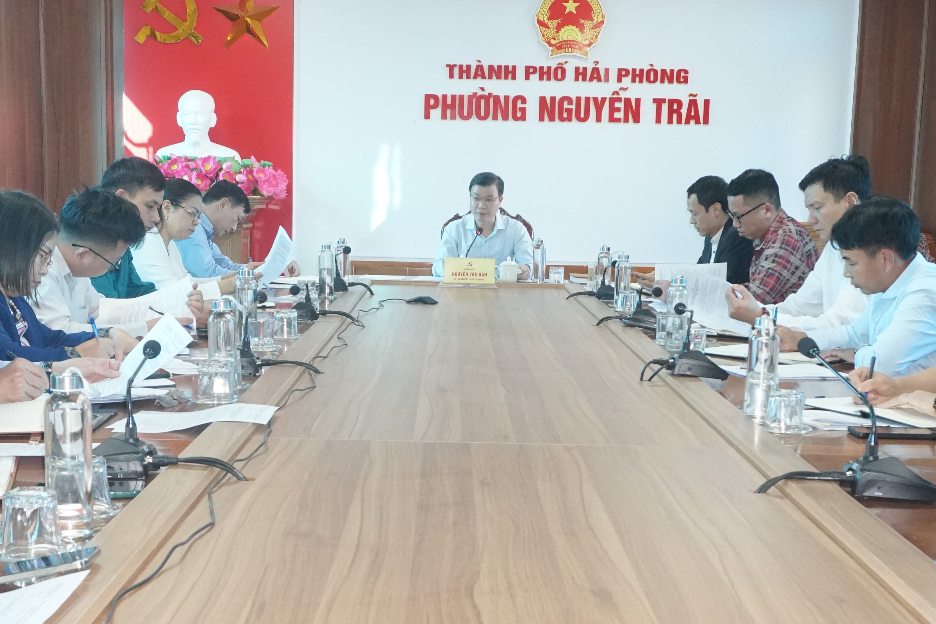 Đồng chí Nguyễn Văn Đản – Bí thư Đảng ủy, Chủ tịch HĐND phường, đồng chí Trần Văn Dược phó bí thư thường trực Đảng ủy, đồng chí Phùng Văn Khiêm phó bí thư, chủ tịch UBND phường, cùng các đồng chí trong Ban Thường vụ, Ban Chấp hành Đảng ủy phường Nguyễn Trãi.
